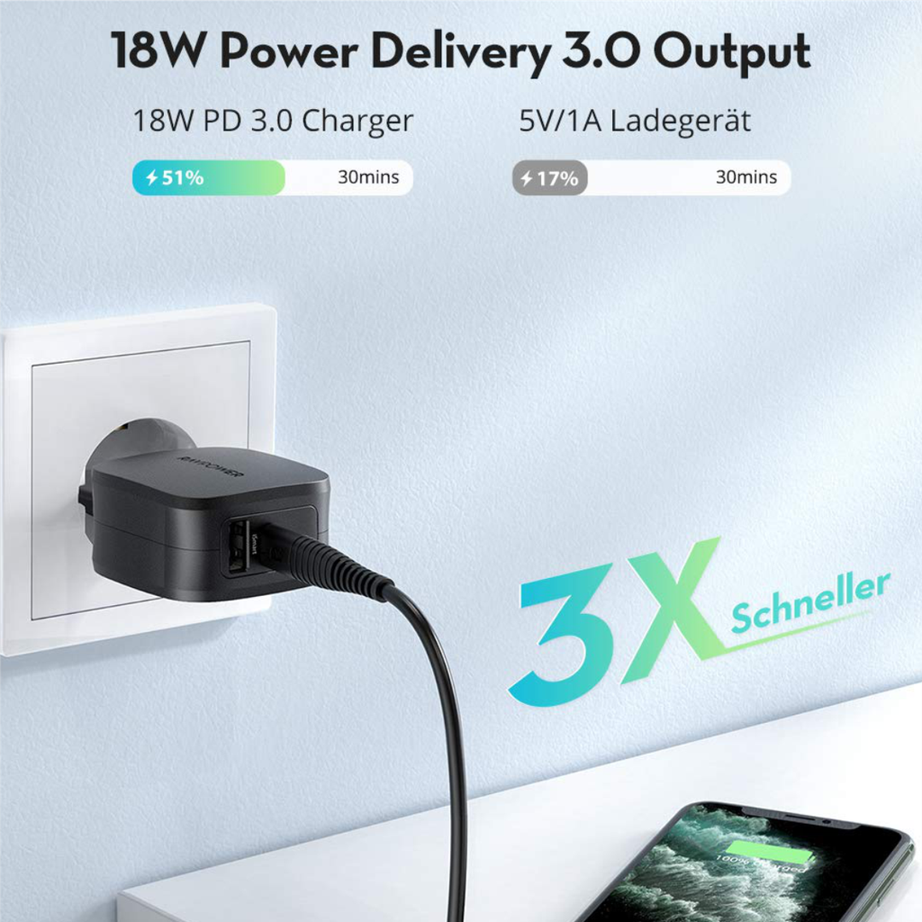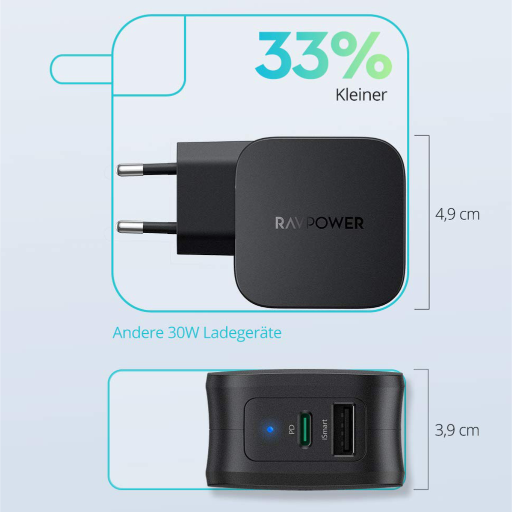 ✅ RP-PC132 Củ sạc RAVPower PD Pioneer 30W Wall Charger Đen