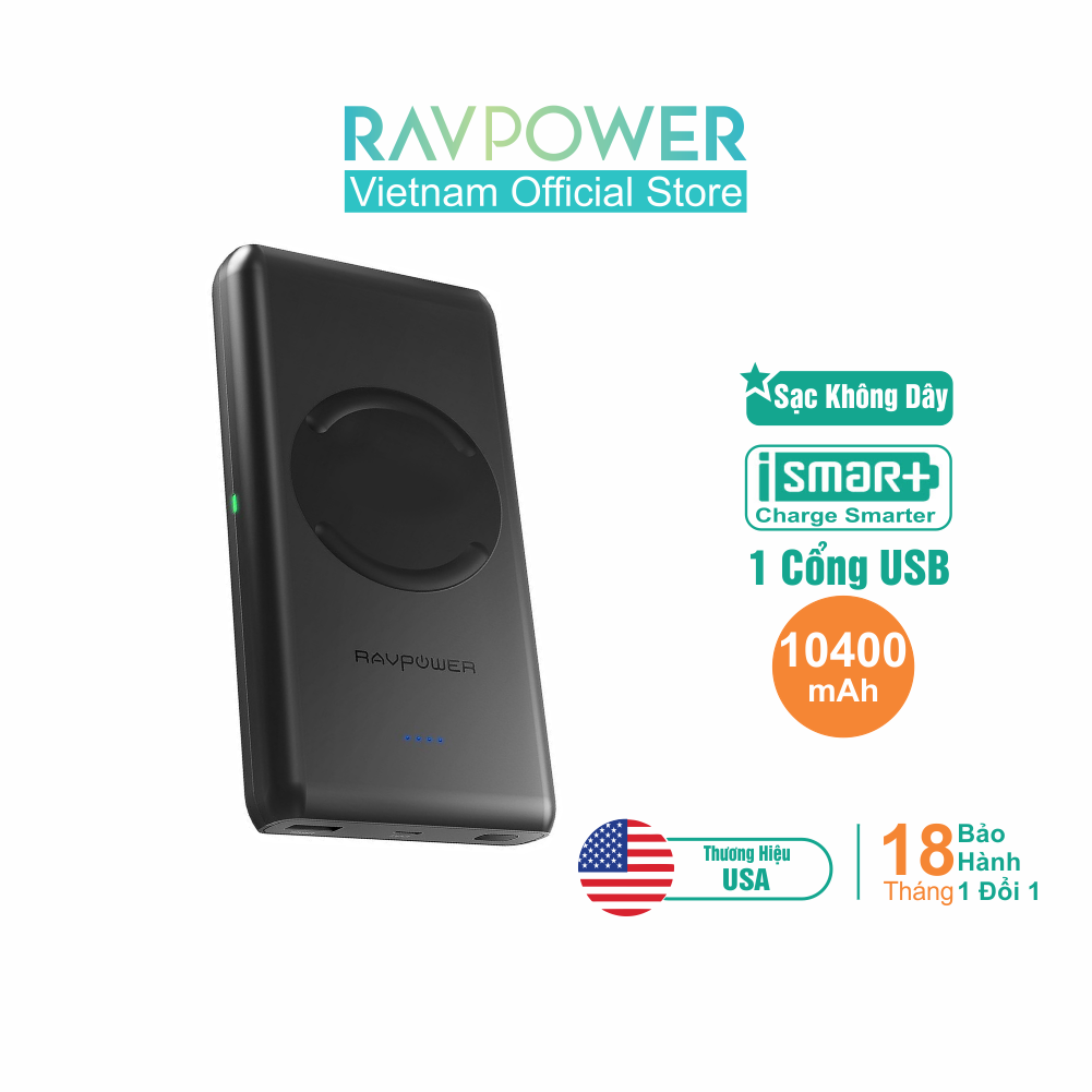 ✅ Sản phẩm thương hiệu RAVPower Bán chạy trên Amazon Mỹ với trên 100.000+ đánh giá tốt & nhận xét 5*. Pin Sạc Dự Phòng Không Dây RAVPower 10400mAh Sạc Nhanh Hyper Air 10W - RP-PB080 - Hàng Phân Phối Chính Hãng