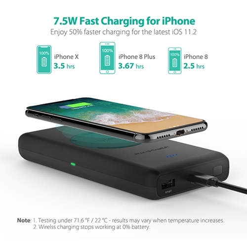✅ Sạc nhanh không dây tốc độ 10W - Ravpower PB080 cho phép sạc điện thoại của bạn nhanh hơn 50% so với các bộ sạc không dây 3,5W-5W truyền thống. Từ phiên bản iOS 11.2 sạc không dây đạt công suất tối đa 7.5W cho iPhone 8, iPhone 8 Plus và iPhone X với thời gian sạc đầy lần lượt là 2,5 giờ, 3,67 giờ và 3,5 giờ (test trong nhiệt độ phòng dưới 22 độ C). Với các thiết bị chạy Android như Samsung, LG,... bộ sạc nhanh hỗ trợ sạc với công suất tối đa 10W. Ravpower RP-PB080 sạc cho Galaxy S8 chỉ mất 3,85 giờ là đầy (test trong nhiệt độ phòng dưới 22 độ C).