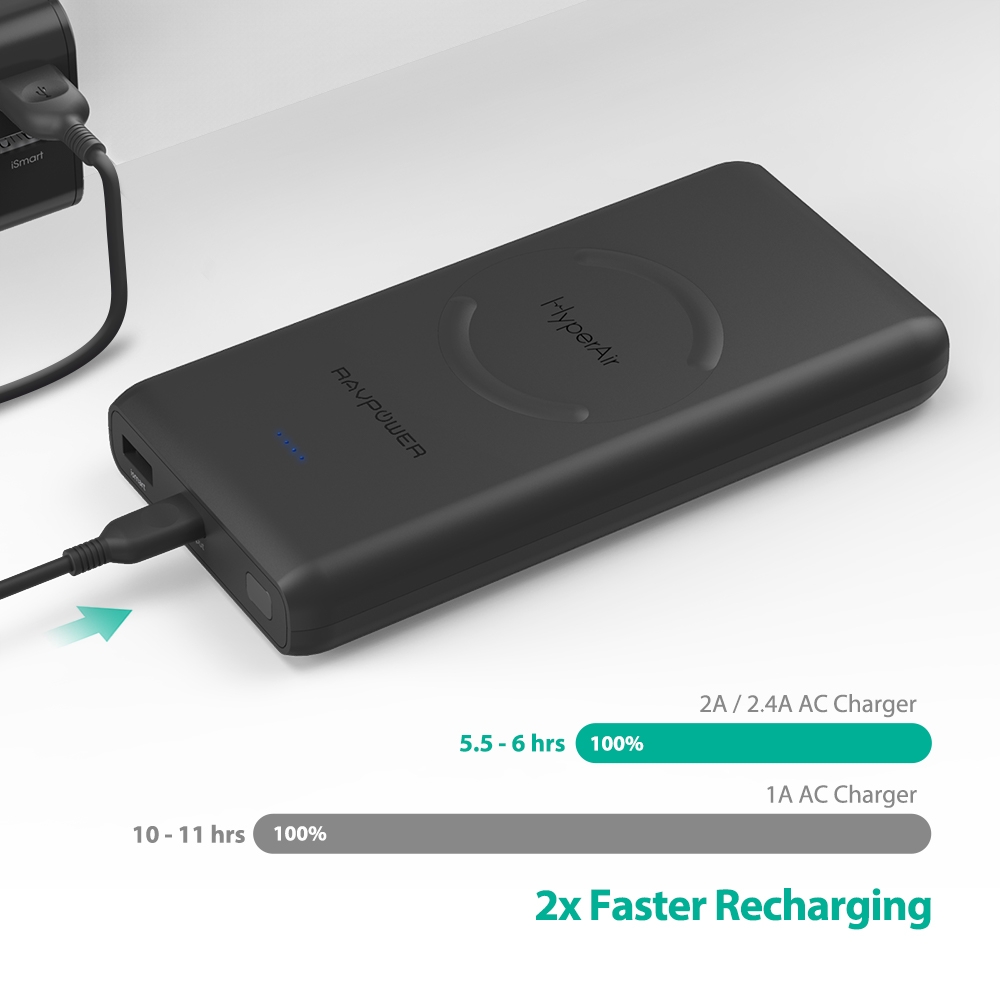 ✅ Công nghệ sạc nhanh không dây Hyper Air từ RAVPower - Pin sạc dự phòng kiêm sạc không dây 10.000mAh Ravpower PB080 với công nghệ sạc nhanh không dây Hyper Air mang lại tốc độ sạc nhanh nhất cho cả thiết bị iOS và Android, có khả năng kiểm soát nhiệt độ 3 cấp, cho hiệu suất sạc tối ưu, cấu trúc bên trong đế sạc không dây cũng được thiết kế lại giúp phân tán nhiệt nhanh hơn và hiệu quả hơn 15% so với các bộ sạc không dây truyền thống.